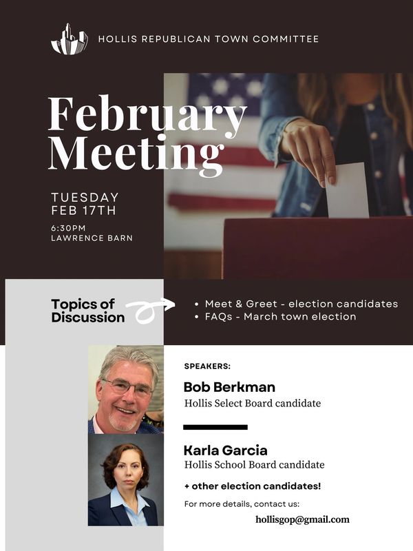 We are a grassroots organization comprised of Hollis residents that support Republican priorities in our community.